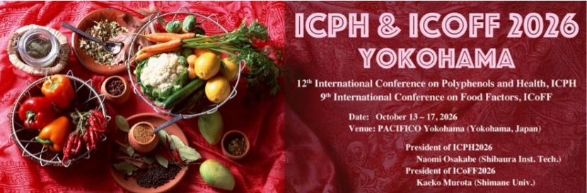 Conférence conjointe ICPH & ICoFF 2026 (12e Conférence internationale sur les polyphénols et la santé et 9e Conférence internationale sur les facteurs alimentaires), qui se tiendra au PACIFICO Yokohama du 13 au 17 Octobre 2026. Cette conférence a pour mission de promouvoir la recherche dans tous les domaines des sciences fondamentales et appliquées de l’alimentation et de la nutrition.