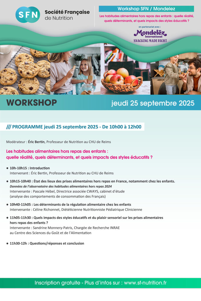 Workshop SFN X MONDELEZ “Les habitudes alimentaires hors repas des enfants : quelle réalité, quels déterminants et quels impacts des styles éducatifs ?” / Jeudi 25 Septembre 2025